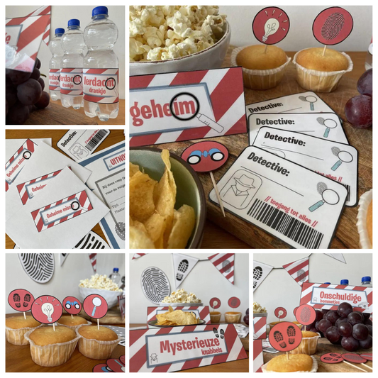 Los het mysterie op met een Detective thema kinderfeestje van MamaFeestbeest! Kruip in de huid van een echte speurder met onze intrigerende detective printables, inclusief speurtocht, raadsels en geheime berichten. Perfect voor kleine detectives die dol zijn op puzzelen en speuren. Plan vandaag nog je detectivefeestje en laat de jonge speurneuzen het avontuur van hun leven beleven!